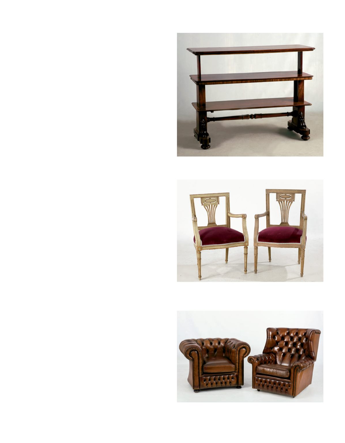 ellos tipo chester y el otro orejero. Respaldos y brazos en capitoné.