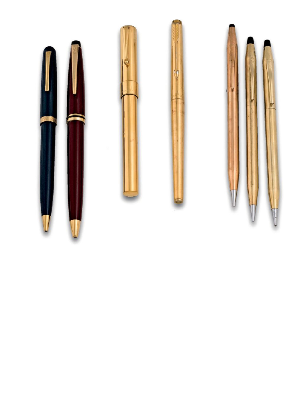 Lote compuesto por pareja de bolígrafos, marca Omas y Cross, motivos chapados, cupuchón y cuerpo en celuloide.