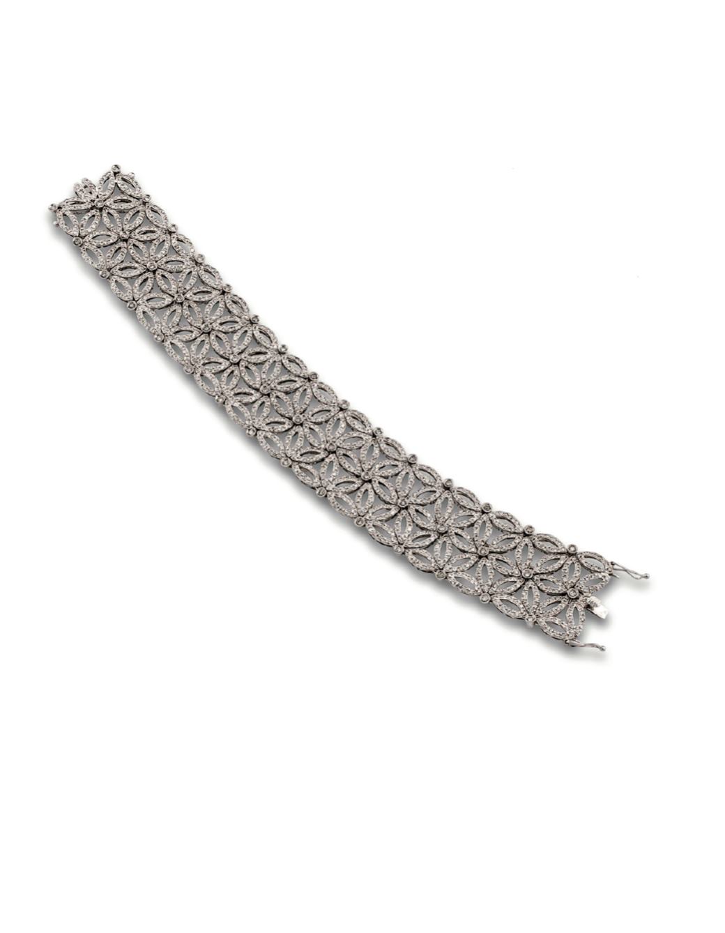 Pulsera en oro blanco de 18 kts, motivos de estrellas con eslabones ovalados cuajados de