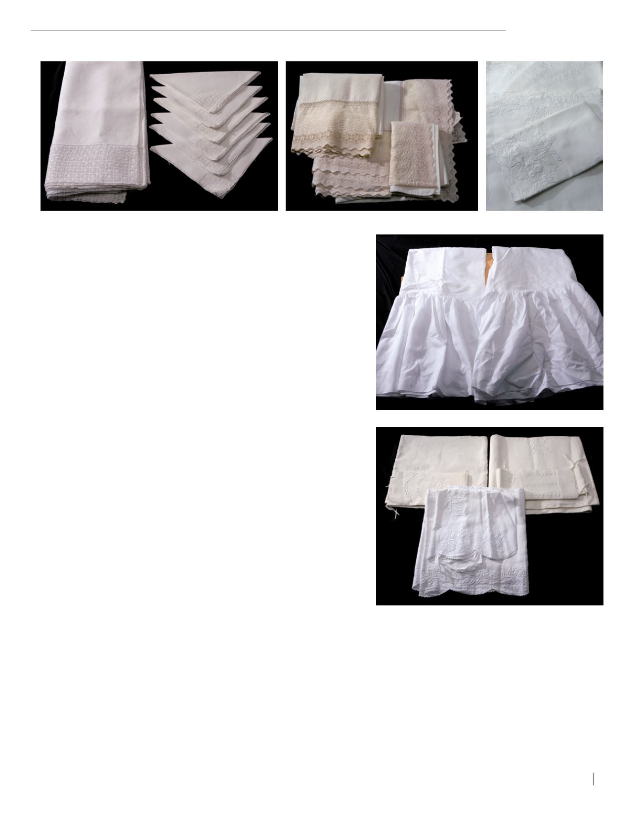 Mantelería en hilo blanco con decoración bordada de vainica, motivos