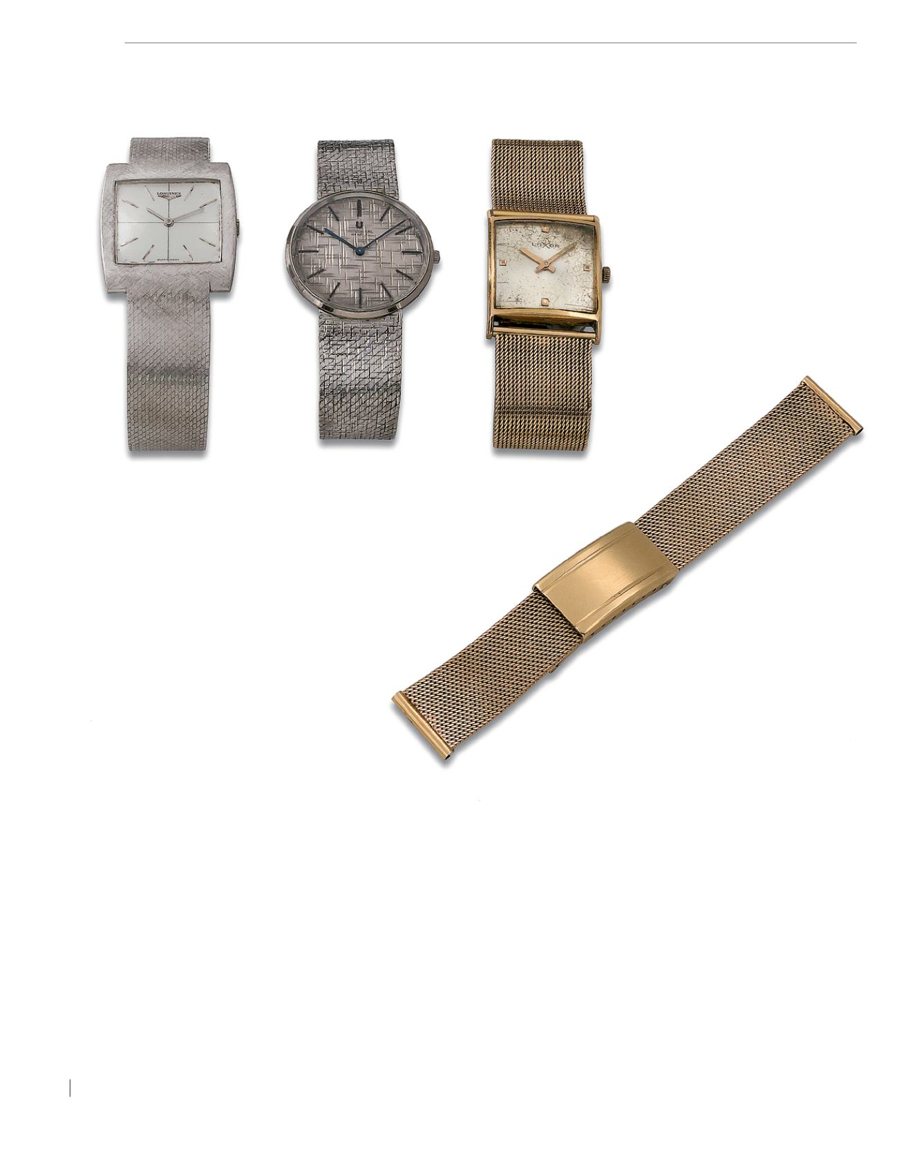 Reloj de pulsera de caballero marca Universal, movimiento mecánico, brazalete y brazo en oro blanco de 18 kts, esfera plateada, índex,