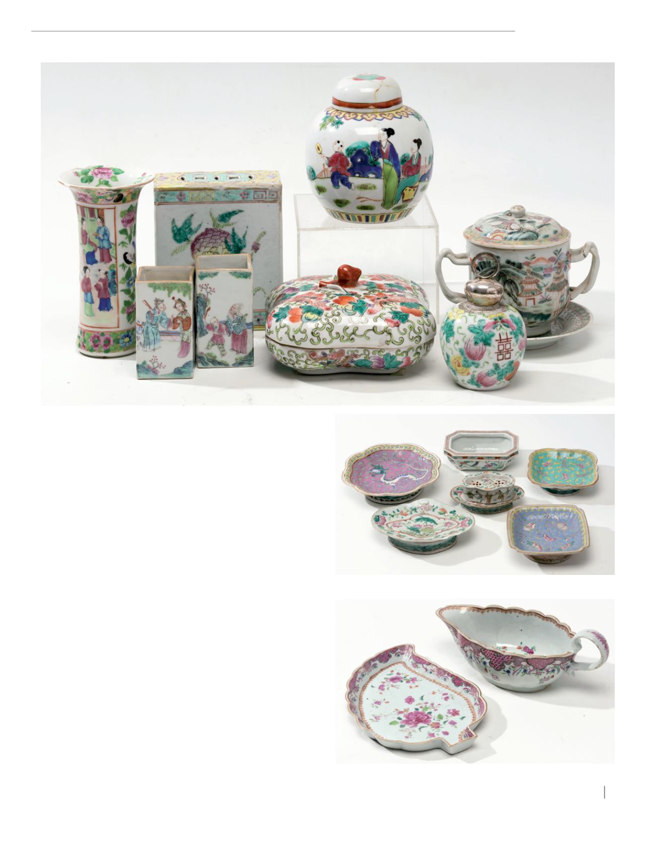 Lote compuesto por ocho piezas en porcelana china estilo Cantón, S.