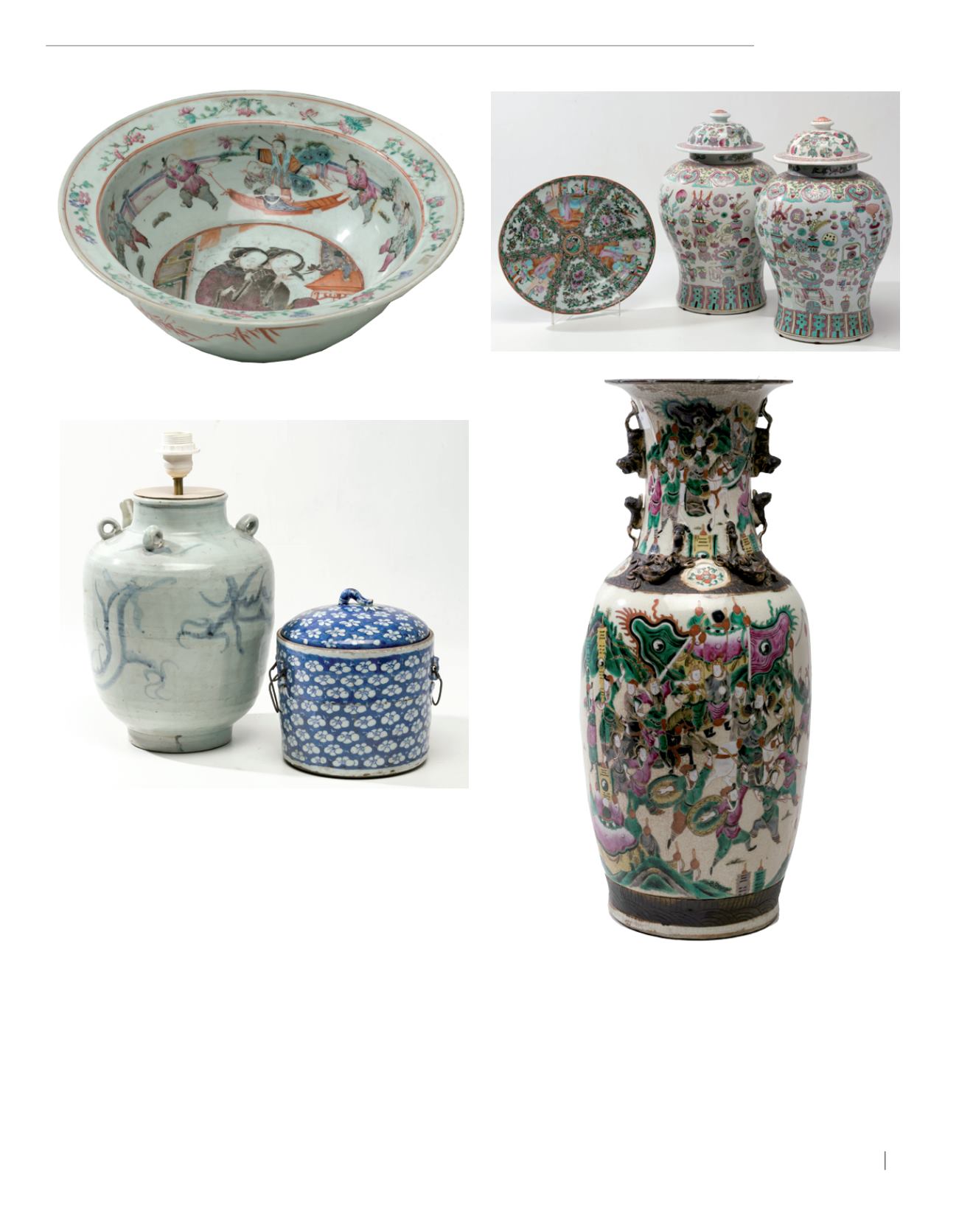 Cántaro en porcelana china, adaptado a lámpara, siguiendo modelos del