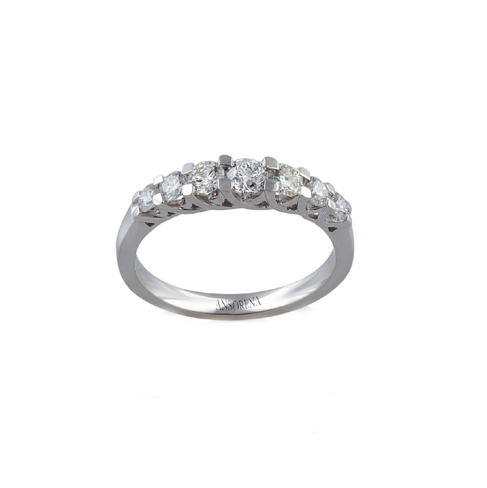 18 kt white gold half septum ring formed by brilliant cut diamonds, total weight 1.05 ct.