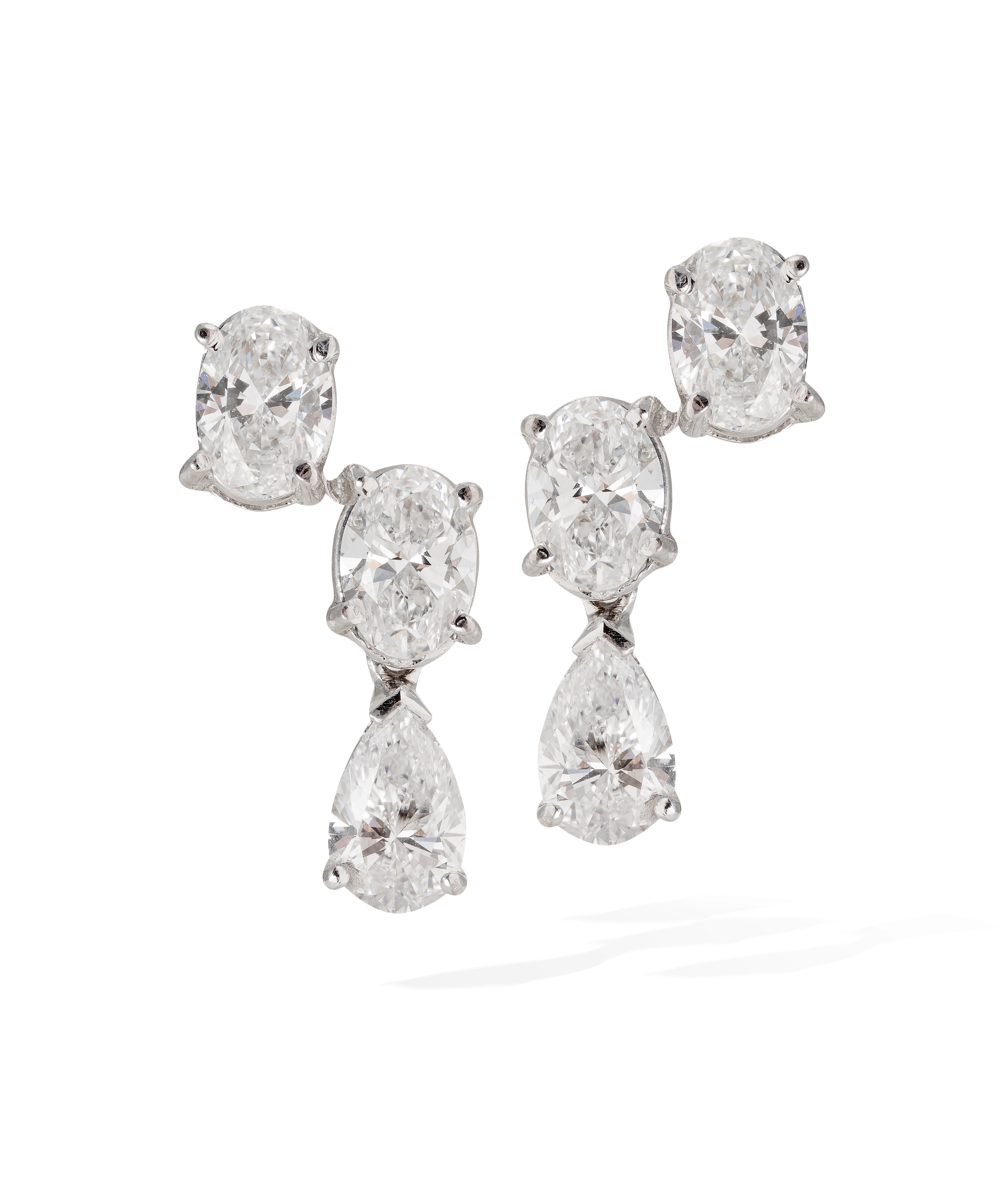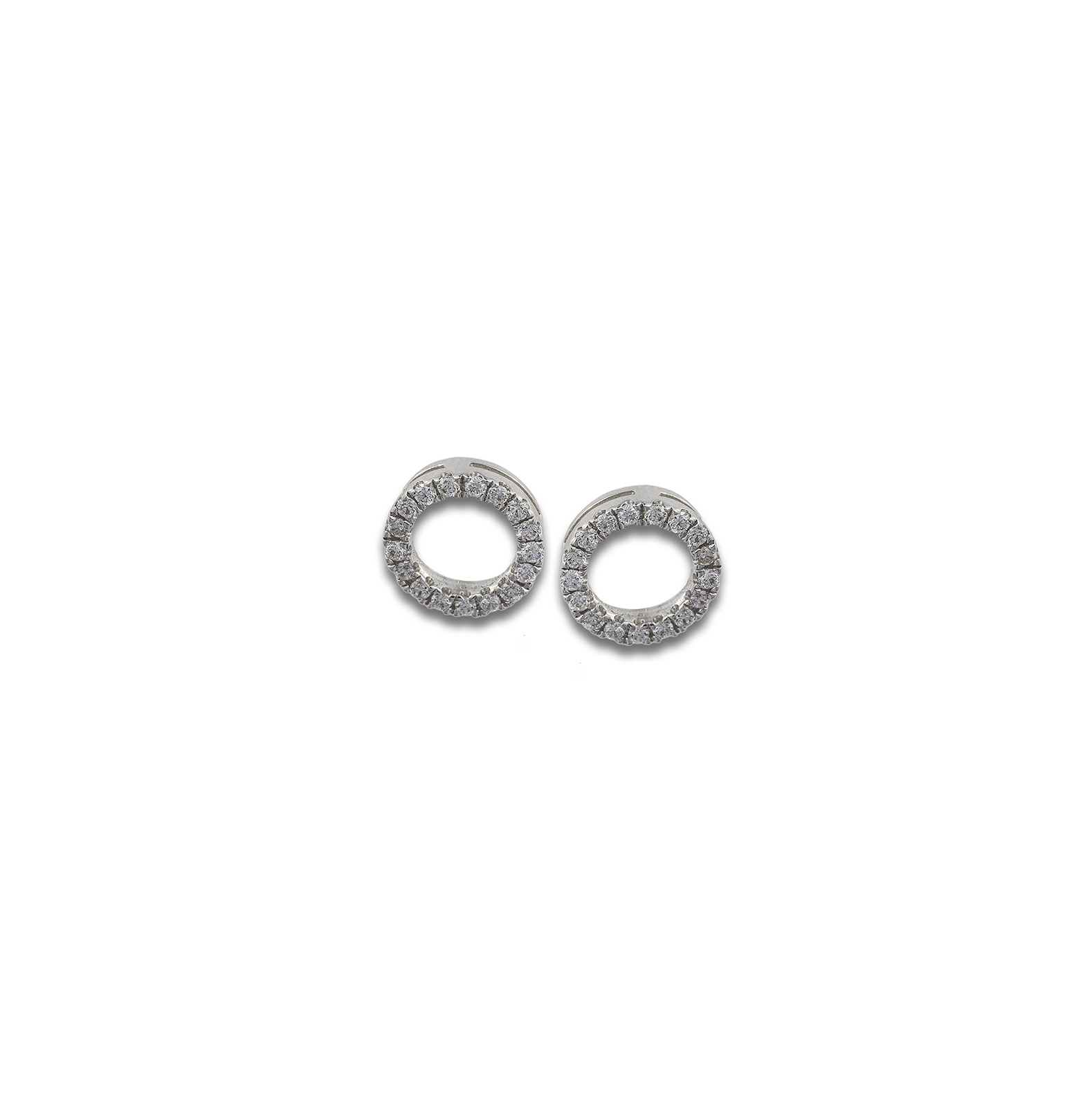 Pendientes criollas triples de oro blanco de 18 kt. formadas por diamantes talla brillante, peso total 0.26 ct.
