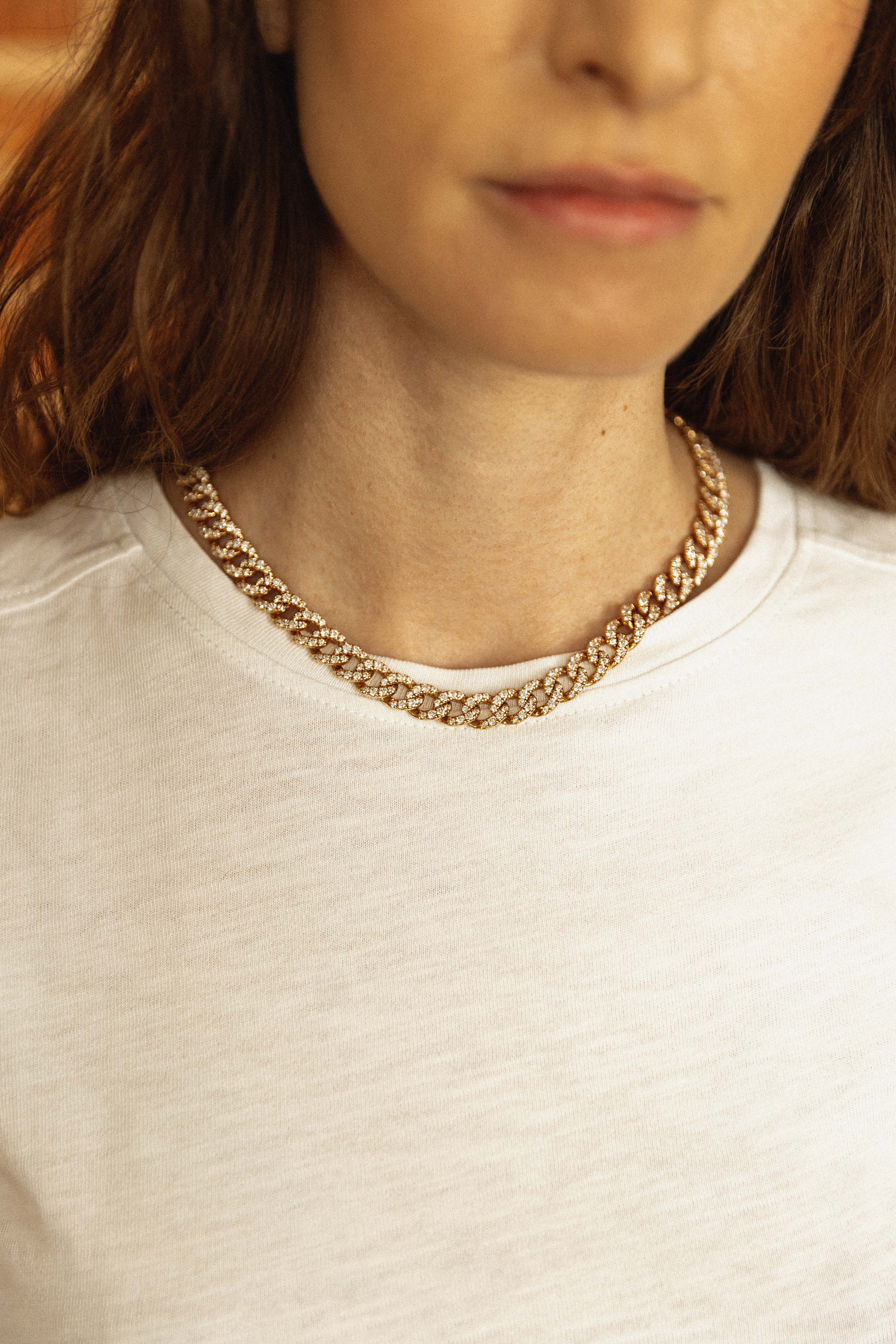 18 kt rose gold link necklace set with brilliant cut diamonds quality D/E SI, total weight 14.45 ct