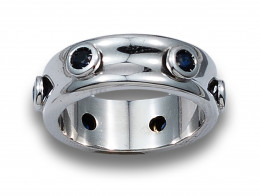 ANCHA ALIANZA SIN FIN DE ORO BLANCO Y ZAFIROS