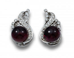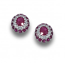 PENDIENTES ROSETONES DE DIAMANTES Y RUBÍES, EN ORO BLANCO