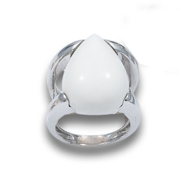 SORTIJA EN ORO BLANCO CON JASPE BLANCO TALLA PERA EN CABUJÓN