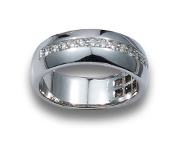 SORTIJA ANCHA MEDIA ALIANZA DE DIAMANTES, EN ORO BLANCO