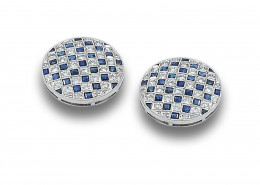 PENDIENTES CIRCULARES DAMERO DE DIAMANTES Y ZAFIROS SINTÉTICOS, EN PLATINO