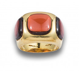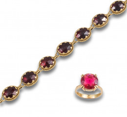 CONJUNTO DE SORTIJA Y PULSERA EN ORO AMARILLO CON VIDRIOS