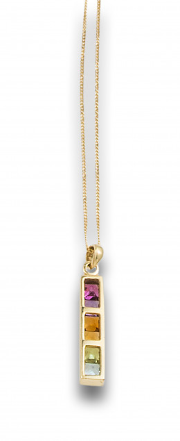 COLGANTE Y CANDENA EN ORO CON TOPACIOS DE COLORES