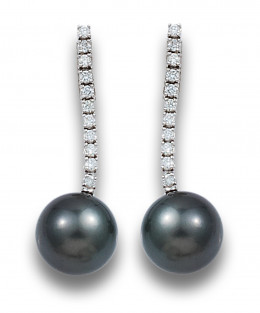 PENDIENTES LARGOS RIVIERE DE DIAMANTES, PERLAS TAHITÍ Y ORO BLANCO