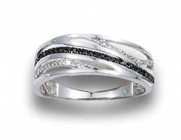 SORTIJA DE DIAMANTES NEGROS E INCOLOROS, EN ORO BLANCO