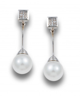 PENDIENTES LARGOS DESMONTABLES DE DIAMANTES, PERLAS AUSTRALIANA Y ORO BLANCO