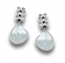 PENDIENTES DE ORO BLANCO Y PERLAS BARROCAS CON BANDA DE DIAMANTES