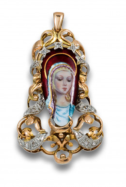 COLGANTE VIRGEN DE ORO AMARILLO, ESMALTE Y DIAMANTES