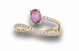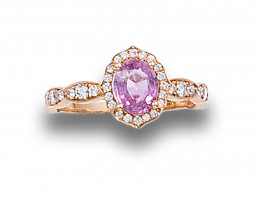 SORTIJA DE ZAFIRO ROSA Y DIAMANTES, EN ORO ROSA