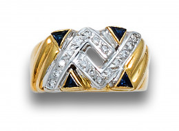 SORTIJA CALADA DE ORO AMARILLO, DIAMANTES Y ZAFIROS
