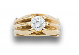 SORTIJA DE CABALLERO DE DIAMANTE ESTIMADO EN 0.60 CT. Y ORO AMARILLO