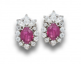 PENDIENTES ROSETONES DE RUBÍES Y DIAMANTES EN ORO BLANCO