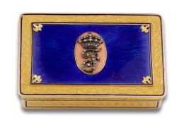 CAJA DE RAPÉ, FRANCIA S.XIX, EN ORO, PLATA, ESMALTES Y DIAMANTES