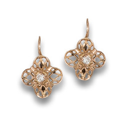 PENDIENTES EN ORO AMARILLO CON DIAMANTES Y CORAL