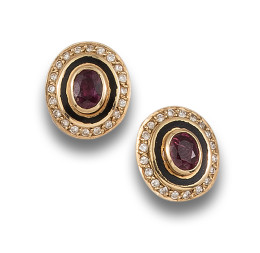 PENDIENTES EN ORO CON RUBÍES, DIAMANTES Y ESMALTE