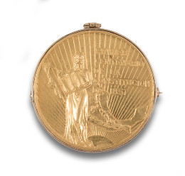 MEDALLA CONMEMORATIVA DEL PRIMER CENTENARIO DE LA CONSTITUCIÓN DE 1857 EN ORO ADAPTADA A BROCHE Y COLGANTE