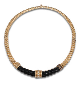 GARGANTILLA EN ORO CON DIAMANTE Y ÓNIX