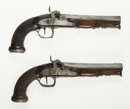 Pistola inglesa de cañónes superpuestos, último tercio S.XVIII, fabricada pr Laci, London