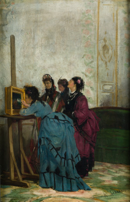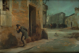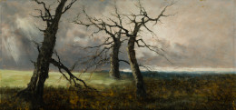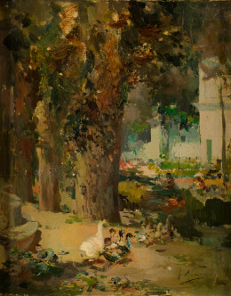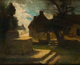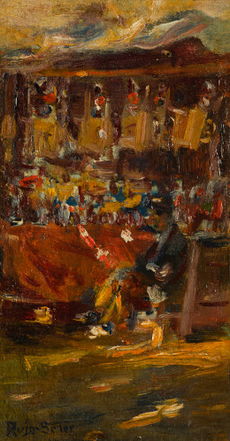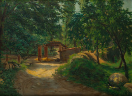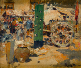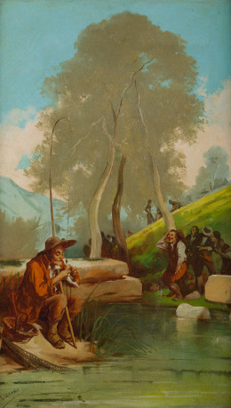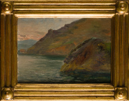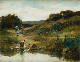 "Paisaje con barca de remos, barcos y ciudad holandesa al fondo"