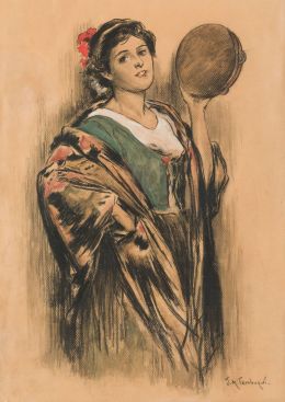 SPANISH SCHOOL (Early 20th Century) "Gypsy woman with shawl", 1908