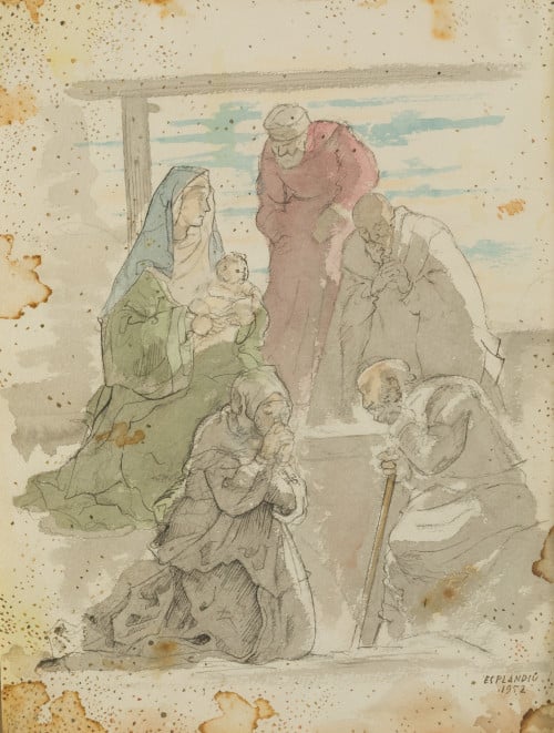 Firmado y fechao en el ángulo inferior derecho. Presenta manchas en el papel