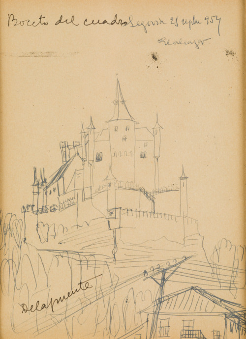 Boceto del cuadro "El Alcázar". Firmado, fechado y titulado.