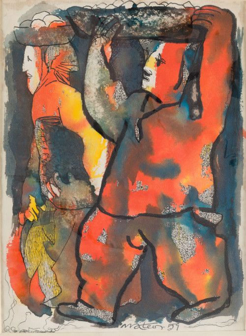 Firmado y fechado en la parte inferior. Al dorso etiqueta de la Dirección General de Bellas Artes del Ministerio de Educación y Ciencia Comisaría General de Exposiciones (Museo español de Arte Contemporaneo) Exposiión "Mateos"