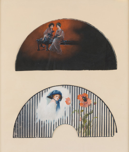 66 66. Dos modelos de abanicos enmarcados s.XIX, g ouache sobre papel Lote compuesto de dos países de abanicos, se presenta enmarcado. Lote compuesto de dos países de abanicos, se presenta enmarcado. Lote compuesto de dos países de abanicos, se presenta enmarcado.
