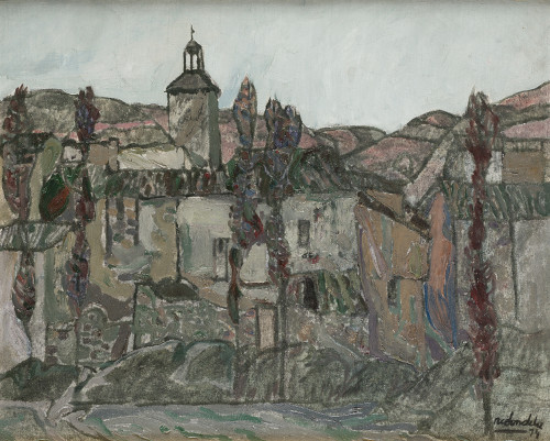 Firmado y fechado en el ángulo inferior derecho. Al dorso en el bastidor titulado, firmado y fechado. Al dorso etiqueta de la Galería Sur, Santander