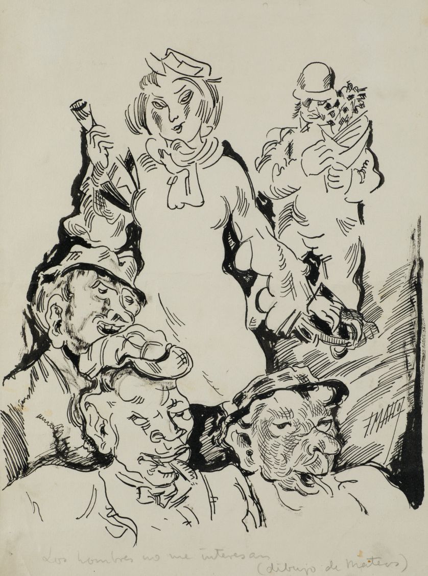 En la parte inferior a lápiz: "Los hombres no me intersan (dibujo de Mateos)"