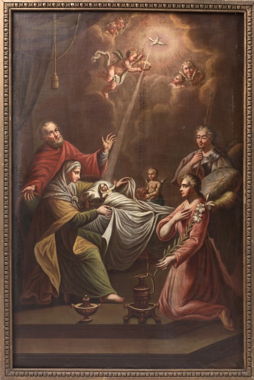 "La dormición de la Virgen", Firmado y fechado; Sorg pinxit 1818