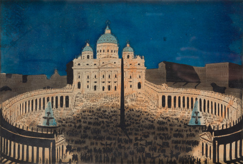 Las perforaciones en el papel permite iluminar la escena a modo de escenografia teatral
