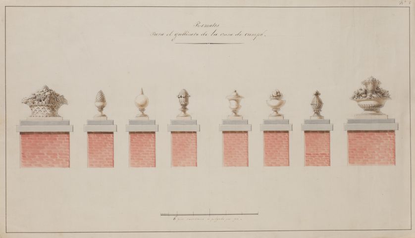 Obra que forma parte de los diseños realizados para el "Proyecto de Gallinero de la Casa de Campo de Madrid". En el fondo antiguo del COAM se conservan los planos para el edificio y dos dibujos más similares con diseños para remates (FOAN_P004). El proyecto lo firma el arquitecto Inocencio Ladrón de Guevara