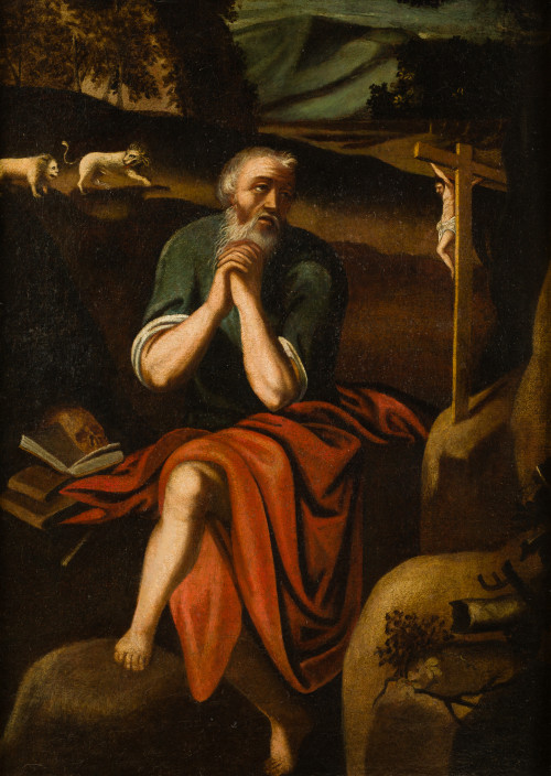 La composición de esta pintura esta inspirada en una obra homonima de Girolamo Muziano que tuvo una gran difusión gracias a la estampa de Cornelis Cort