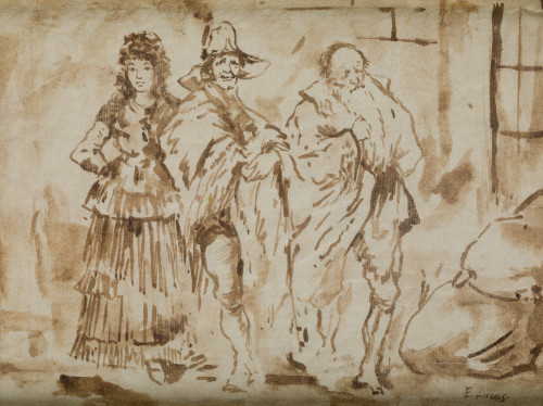 Aguada sepia sobre papel verjurado.