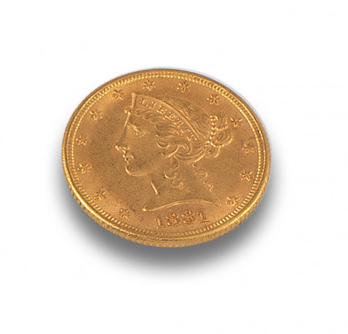 Moneda de oro de 5 dólares, U.S.A., 1881. Peso: 8,36 gr. Peso: 8.36 gr.