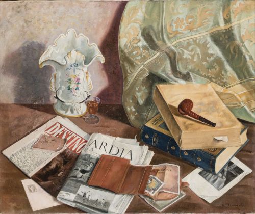 ÁNGEL PLANELLS Cadaqués (1904) / Barcelona (1989) "Still life with books, pipe and newspapers"