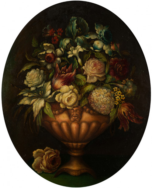 506 """Pareja de flores· Dos oleos sobre lienzo. O vales. Medidas 58 x 47 cm"