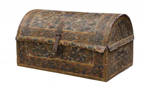 Baúl encorado con tapa de medio cañón, Perú, S.XIX