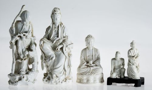 Buddha and two oriental enamelled porcelain figures, China,